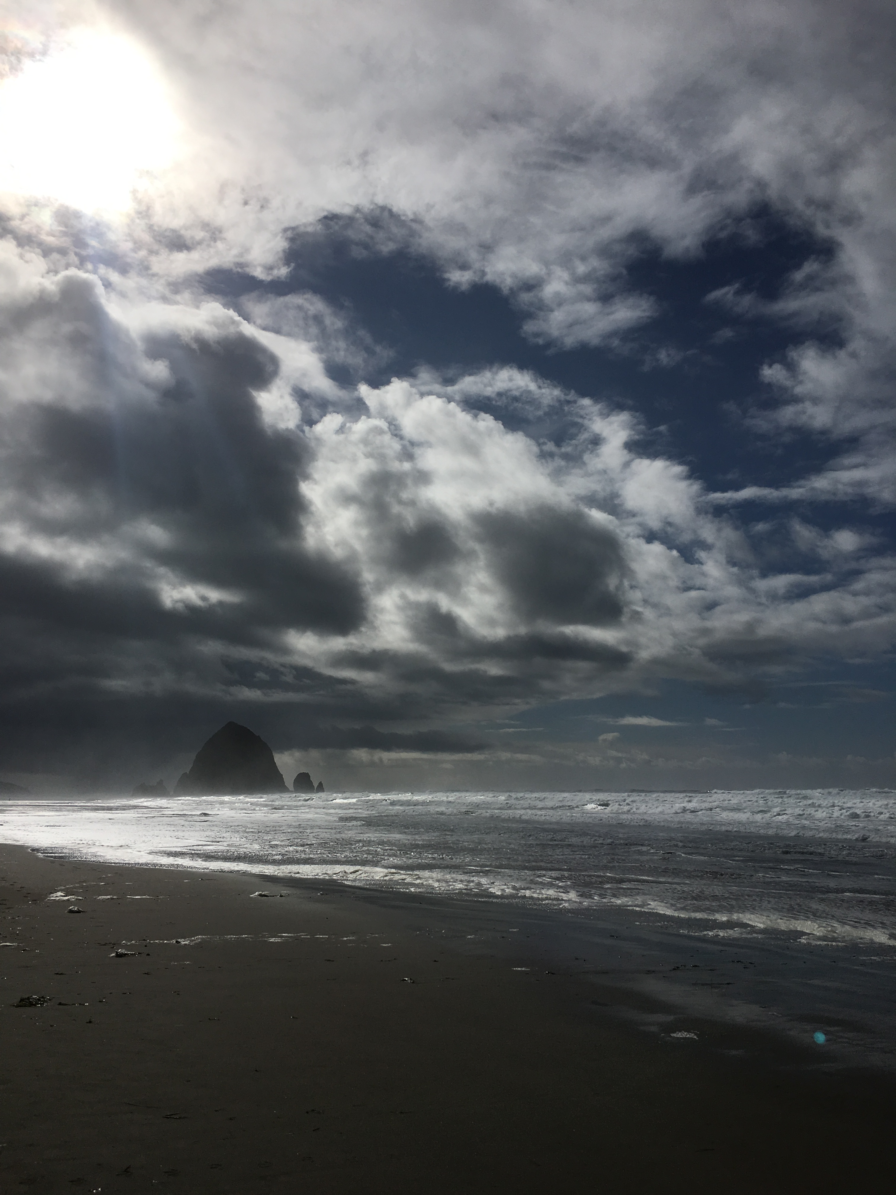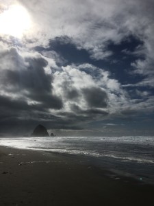 The ocean was as the ocean always is. Powerful. But for the moment it was also quiet. Giant waves were crashing on Haystack Rock but the water pushed slowly to the shore. Sometimes breaking too far away. I wanted to run to them but I waited and walked along the shore. Knowing soon the waves would come to me. Would wash further up. To kiss the toes of my boots and swirl around my ankles.
